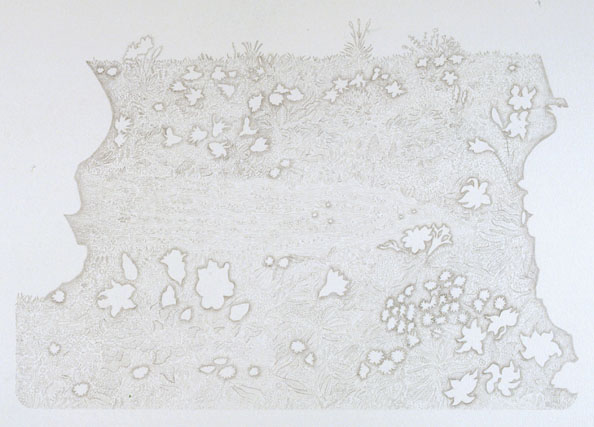 レオナルド・ダ・ヴィンチの《受胎告知》の、天使とマリアに挟まれた画面中央下の部分の地面をモチーフに描いたもの。《(07-26) GARDEN》も同様の部分をモチーフに作った作品。