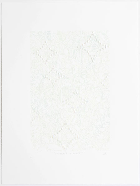 《DISTANCE IN FOREST》のドローイング。色鉛筆の描写に偏光パールのドットが重ねられている。