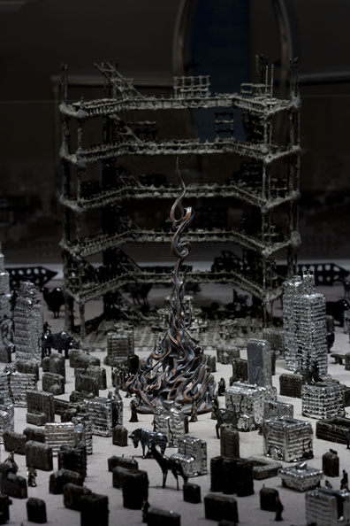 黒い立体のインスタレーションの中心には《炎舞》の立体。