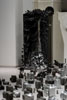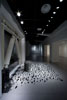 「絵画をめぐって」と初めて題した、中京大学アートギャラリー C・スクエアでの個展では、2カ所にインスタレーションをした。壁で区切られたスペースには白い空間を作った。耐震補強の入った柱で囲まれた部分には黒い立体を並べた。非現実空間を作り出し、それを体験した人の心に生じる掴みどころないイメージは、「絵画」の物質的な側面ではない理念としての本質にも似たものではないか、そのような仮説から試みたもの。