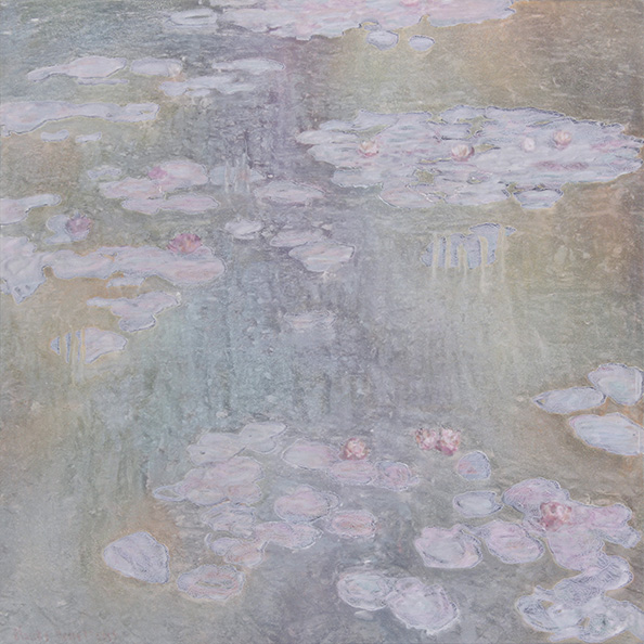阿波和紙に写真をインクジェットプリントをした上にエッチングを刷り重ね、パールペイント、ラメ、樹脂を施したもの。モネ《睡蓮》(国立西洋美術館蔵)を元に立体を制作したものに、パールペイントで他の美術館のモネの睡蓮の色彩をペイントした作品。この作品は、メトロポリタン美術館所蔵の睡蓮を元に色彩をペイントした。